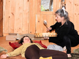 La pièce de soins énergétiques : C’est, celle qui précède « l’antre-deux », pour ceux qui ont besoin de beaucoup de douceur et plus de temps avant de commencer la pratique du soin chamanique au tambour. Soit parce qu’ils ont besoin de bénéficier d’énergie (magnétisme animal), soit parce qu’ils ont besoin de retrouver du calme et faire baisser leur stress (réflexologie et magnétisme) ou encore parce qu’ils doivent entrer en état de conscience modifié pour se libérer d’une addiction.